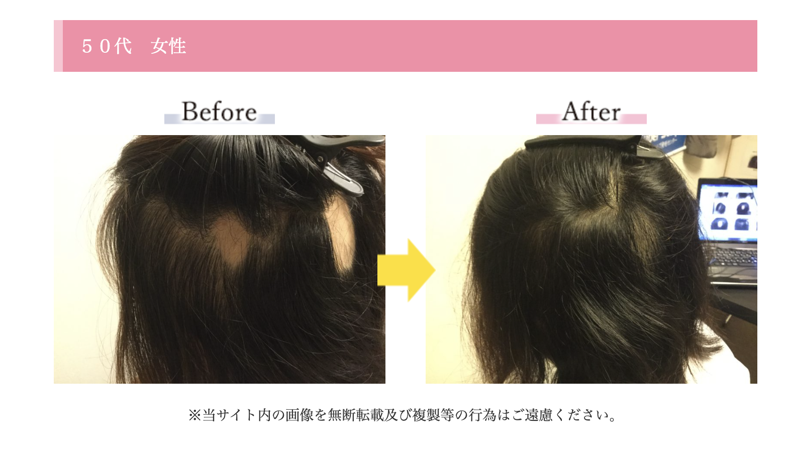半年後、薄毛が目立っていた部分は改善し、頭皮の透け感も気にならなくなりました。